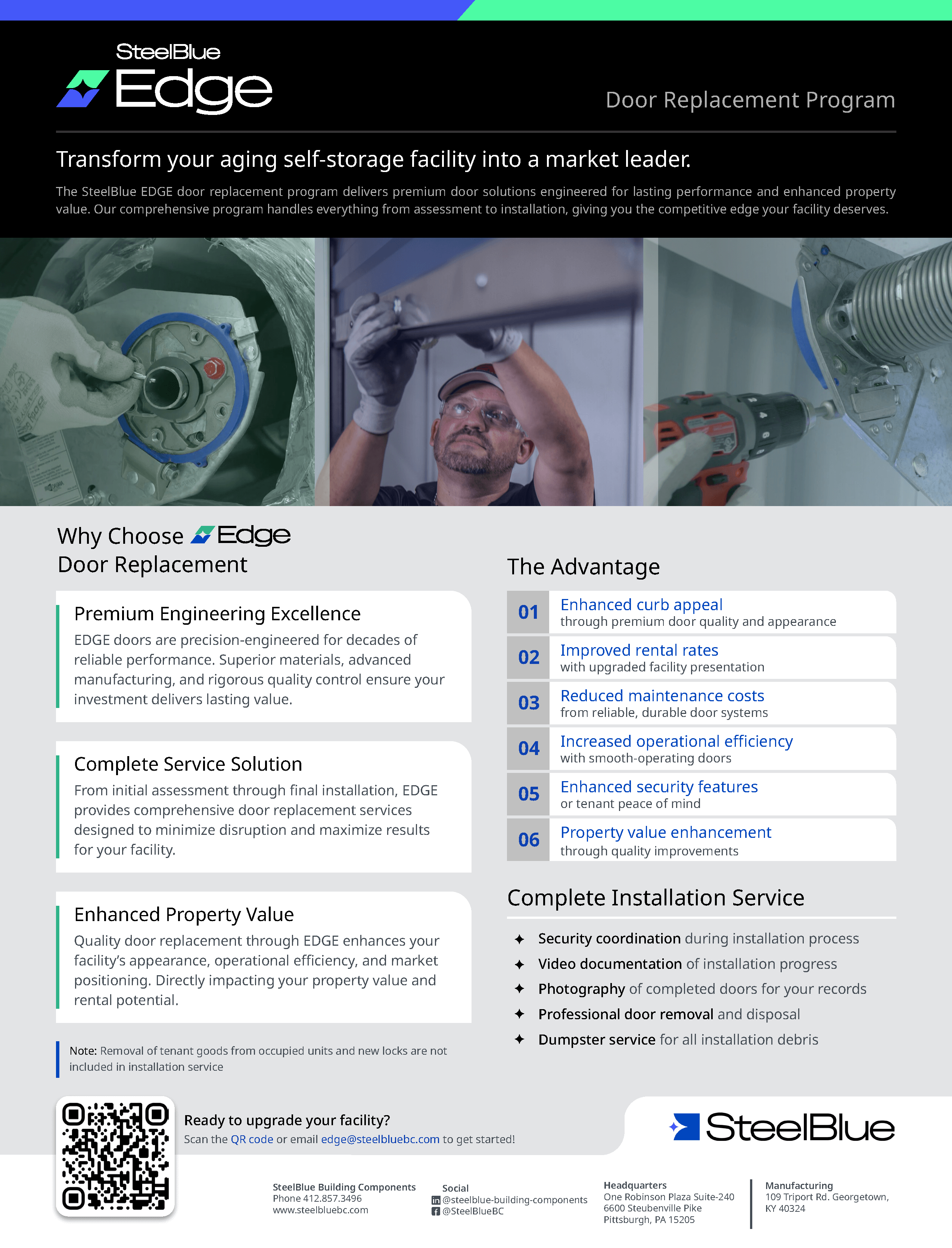 Quality door replacement through EDGE enhances your facility's appearance, operational efficiency, and market positioning. Directly impacting your property value and rental potential.