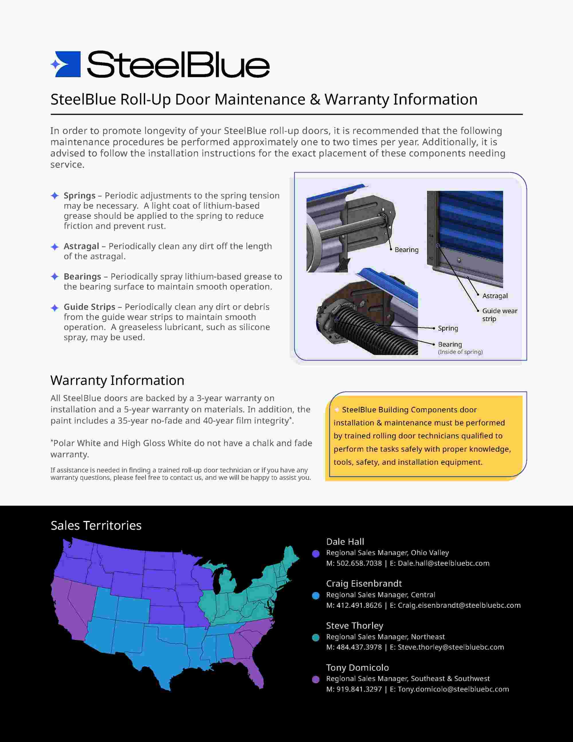 This steel roll up door is constructed from 26-gauge, Grade 80 prepainted steel, ensuring durability and reliability. It also features a 6063-T6 aluminum bottom bar and a 14-gauge galvanized steel guide system for superior performance and longevity.